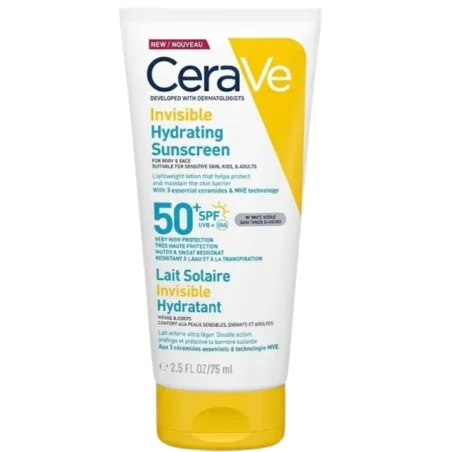 Cerave Lait Solaire Invisible Hydratant SPF50+ | Peau Normale à Sèche |Peau sensible | 75ml