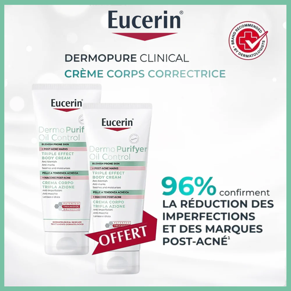 Soyez le premier à laisser votre avis sur “Eucerin dermopurifyer triple effect body cream 200ml = dermopurifyer body cream 200ml Offert”